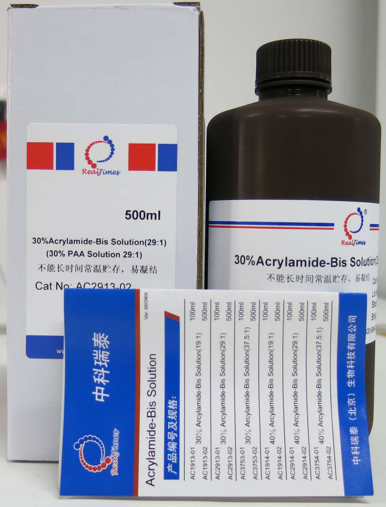 PAA溶液常用于配制PAGE膠,包括SDS-PAGE,Tricine膠,Blue native膠等,常用于蛋白和核酸的分離。